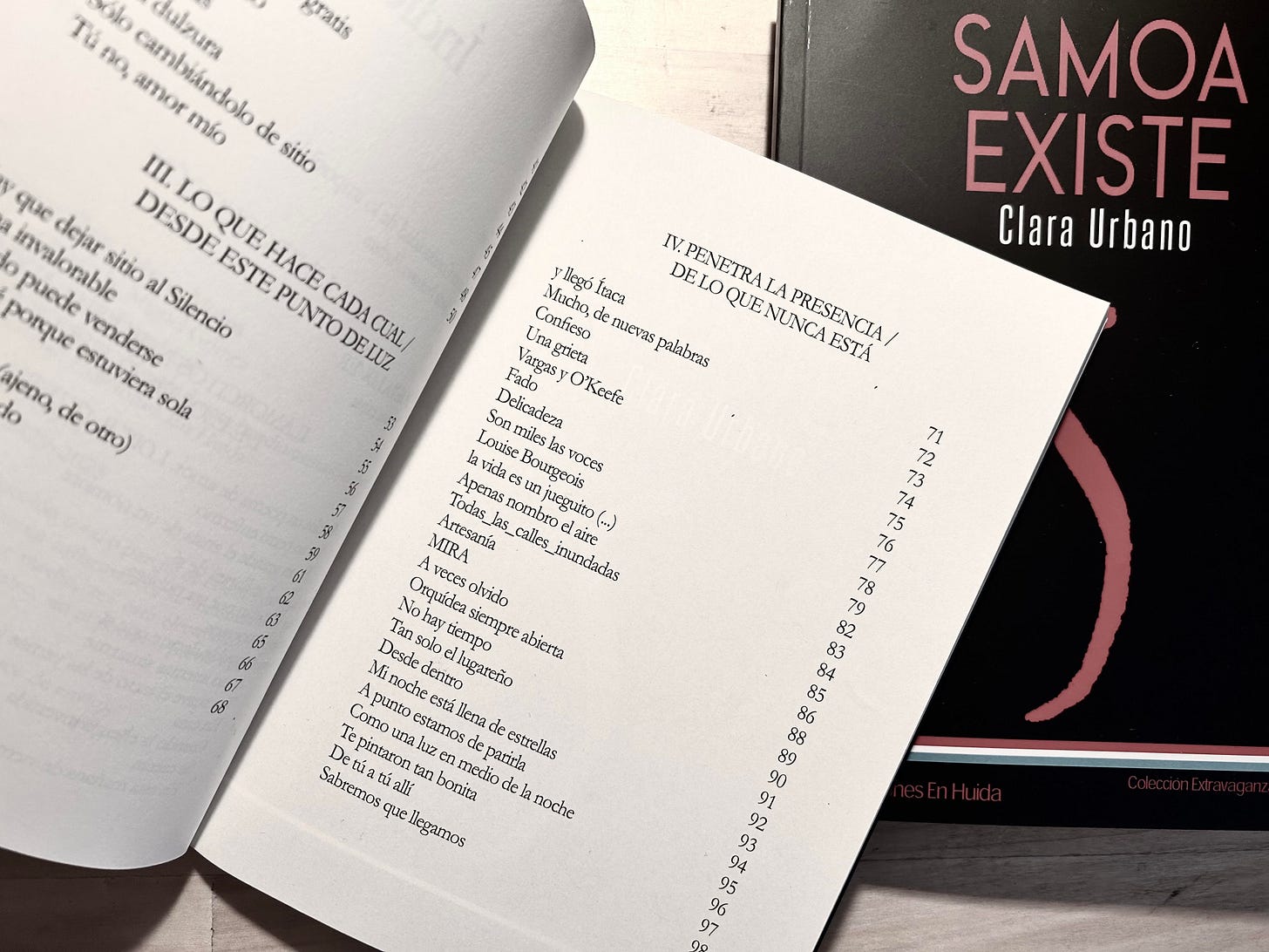 A la venta el día de la presentación y online en Ediciones en Huida: https://www.edicionesenhuida.es/producto/clara-urbano-poesia-samoa-existe/